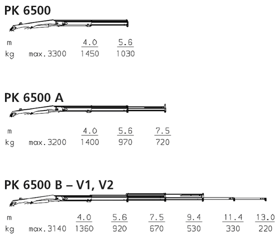Грузоподъемность на вылете 13,0 м с мех. вставками |